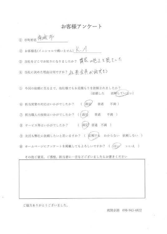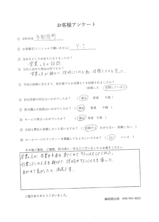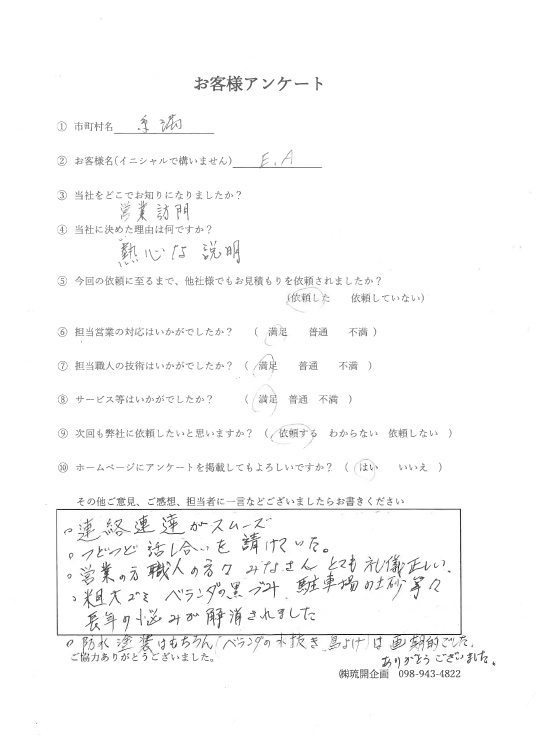 | 2017.10.13 | ・沖縄市N様邸塗替え工事完了 |